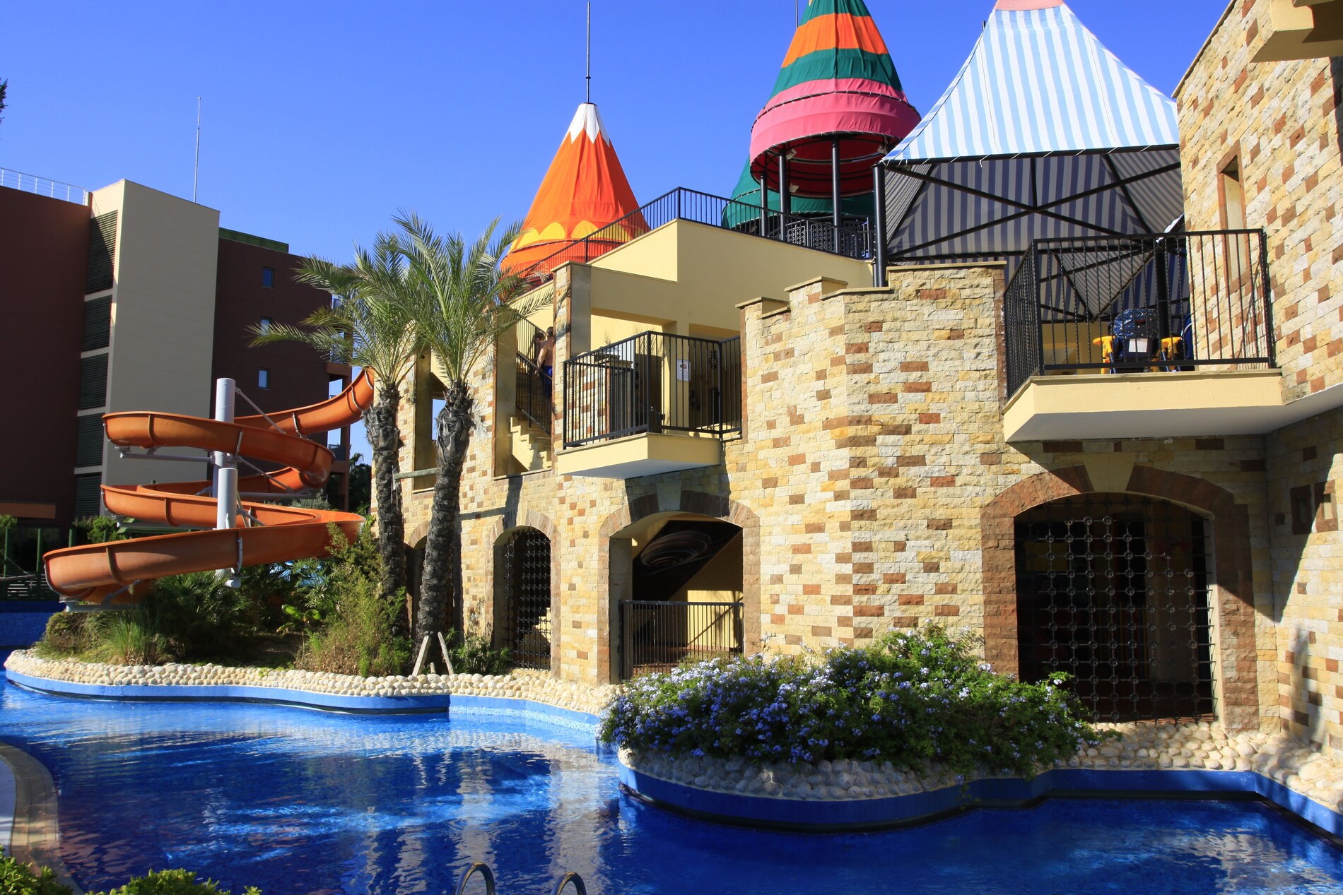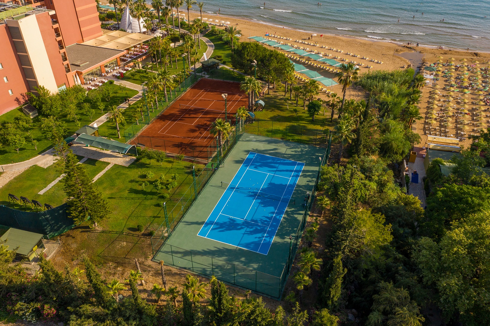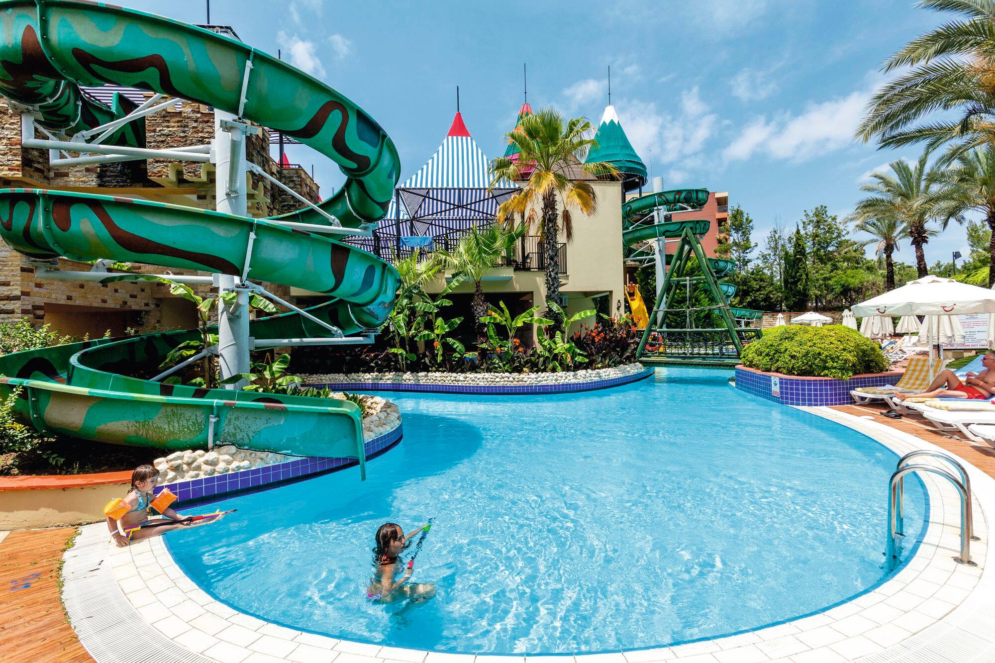 Хотелът разполага с плаж със Син флаг, два открити басейна и водни пързалки, които се предлагат като алтернатива на морето. Има много забавления за малките гости на хотела, така че семейства с деца да могат да се насладят максимално на почивката си. Децата има на разположение басейн с пързалки, където да събират незабравими спомени. За възрастните се организират дневни активности, игри и вечерни представления. С водни спортове като банан, джет ски, сърф и катамаран (срещу заплащане) можете да изживеете моменти, пълни със забавление и адреналин в уникалното синьо море на Анталия. В основния ресторант на хотела Ви очакват изискани вкусове от световната кухня. Ресторантът предлага тематични вечери, готвене на живо и специално обособен кът за деца. За максиимална релаксация и отмора можете да посетите Спа центъра и да използвате турска баня, сауна и масажни услуги (срещу заплащане).