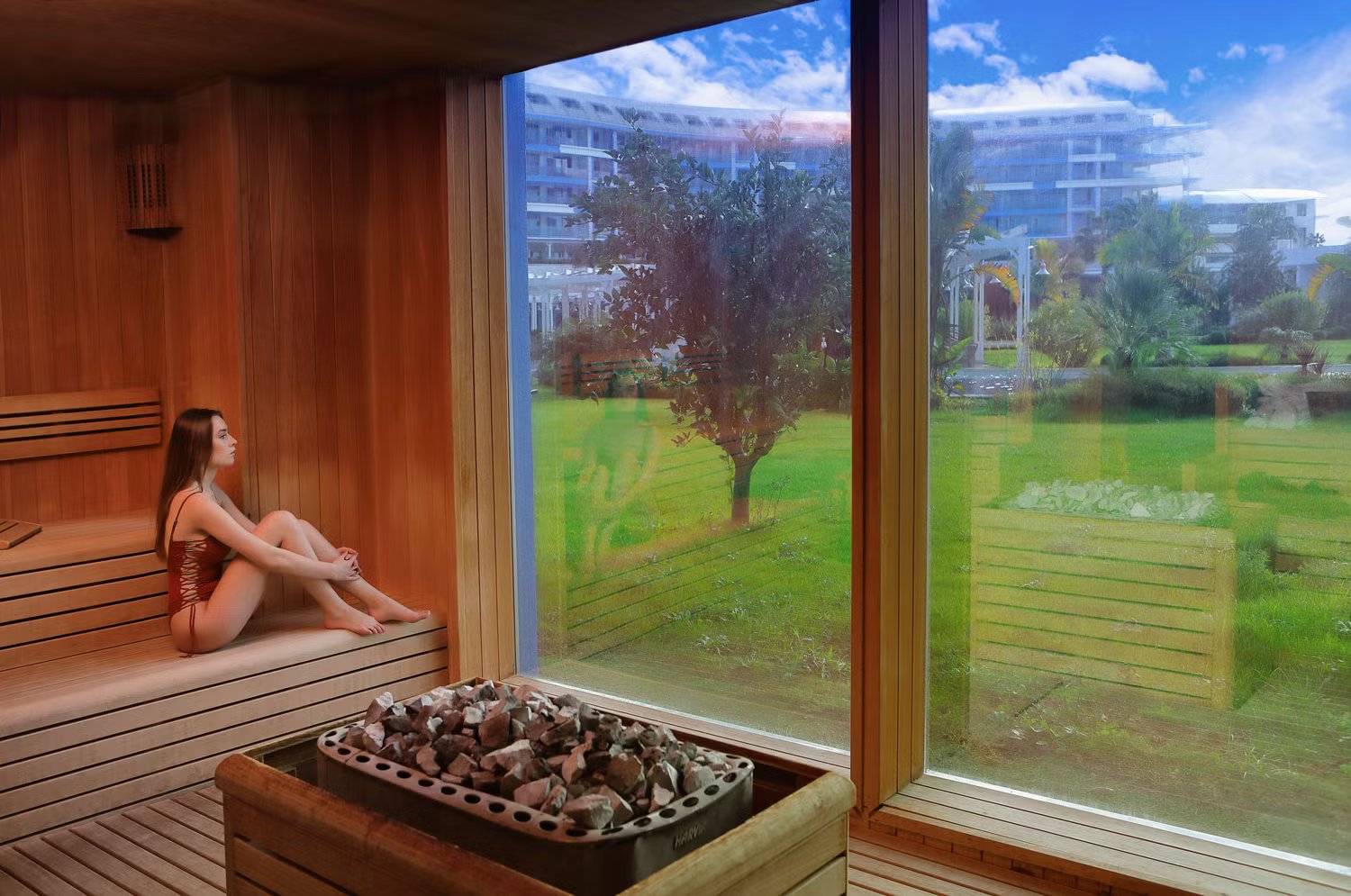 Безжичен интернет, турска баня, парна баня, сауна, дартс, минибар, шезлонги, чадъри, плажни кърпи, фитнес, боча, тенис на маса, тенис на корт (екипировката и освелението се заплащат допълнително).